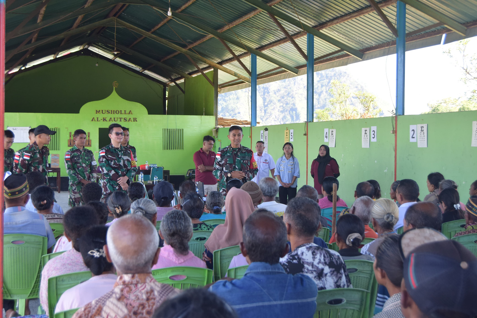 Dansatgas Pamtas, Letkol Arh Endis Fahrul Rizal, S.Hub.Int., M.Sc., menyampaikan apresiasi terhadap kegiatan ini, “Momentum yang baik ini kita manfaatkan untuk mengadakan kegiatan pemeriksaan kesehatan mata. Selain itu, Yayasan Ikatan Optometris Indonesia dan Satgas Pamtas telah menyiapkan 500 kacamata gratis bagi masyarakat yang membutuhkan.”