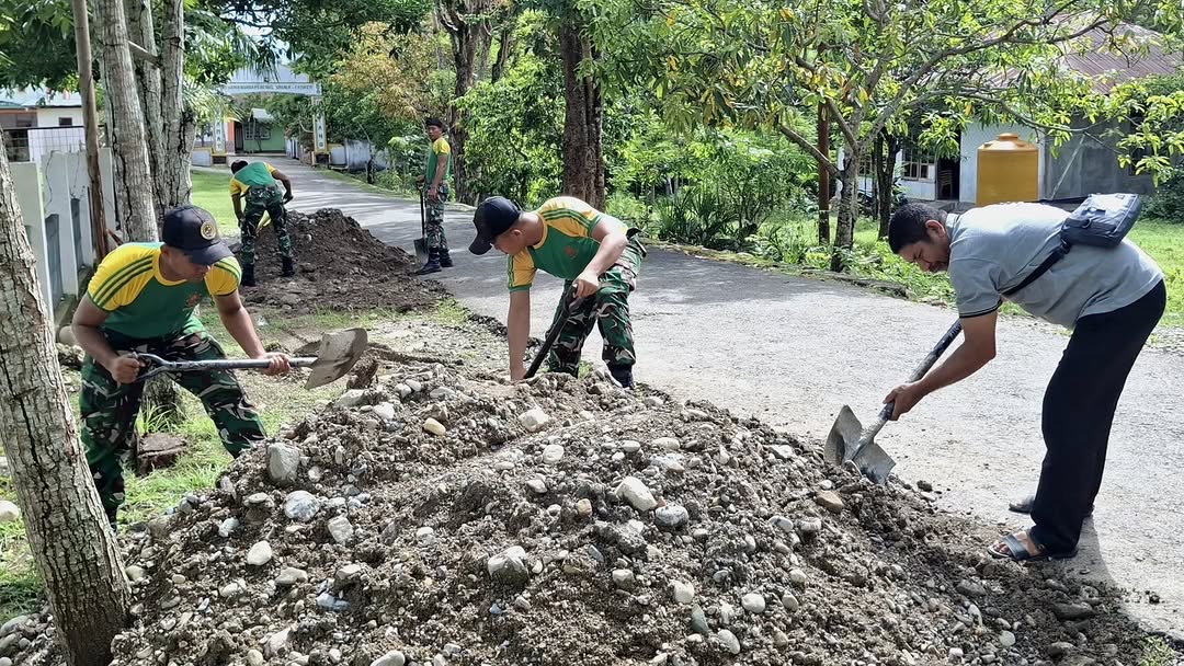Dalam pelaksanaannya, personel Satgas melakukan pemerataan tanah yang berada di samping jalan menuju gereja guna memperbaiki akses dan memberikan kenyamanan bagi umat yang akan melaksanakan ibadah Natal. Kegiatan ini dilaksanakan secara gotong royong sebagai bentuk kepedulian terhadap sarana ibadah dan fasilitas umum masyarakat.