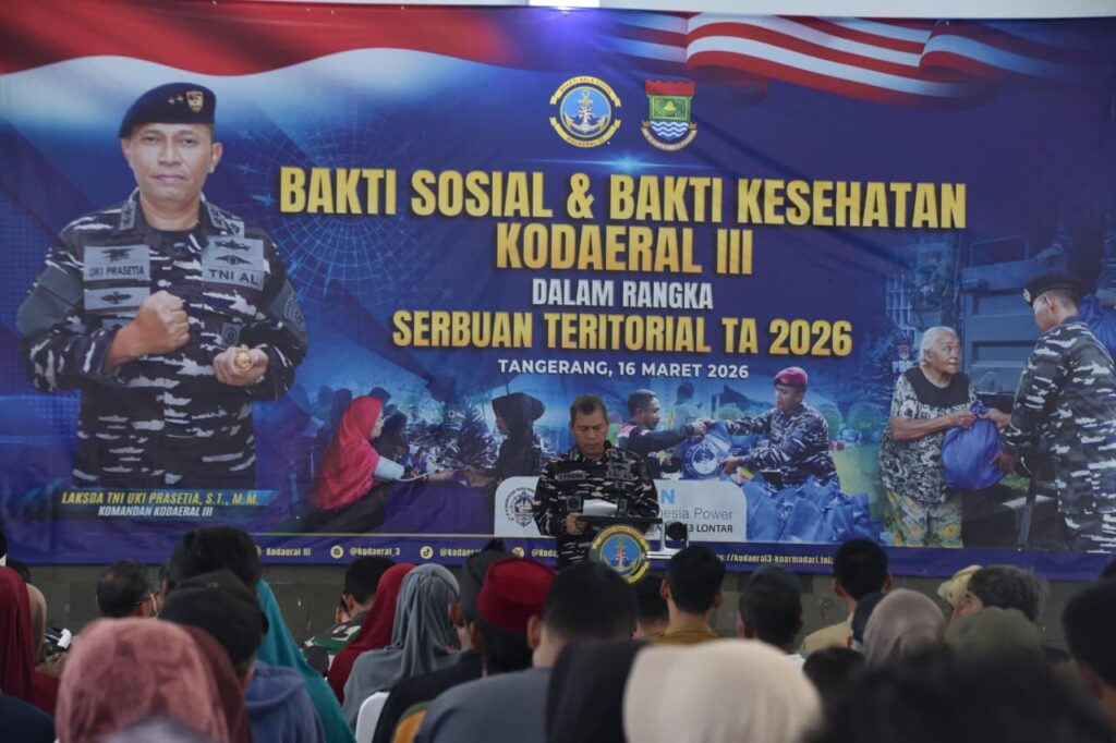 JAKARTT, KLIK7TV.CO.ID. – TNI Angkatan Laut kembali menunjukkan kepeduliannya terhadap masyarakat pesisir dengan menyelenggarakan kegiatan bakti sosial dan bakti kesehatan dalam rangka Serbuan Teritorial Tahun 2026 yang digelar oleh Komando Daerah TNI Angkatan Laut (Kodaeral) III di Balai Pertemuan Kecamatan Kronjo, Kabupaten Tangerang, Banten, Senin (16/3).