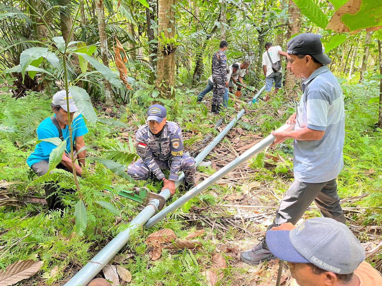 Kegiatan yang dilaksanakan sebagai bentuk kepedulian TNI AL untuk penyediaan fasilitas air bersih bagi warga Kecamatan Ille Boleng, Pulau Adonara, NTT, dilaksanakan secara bertahap dan hari ini dilaksanakan pemasangan pipa air di titik mata air hingga Desa Puhu sepanjang 234 meter.