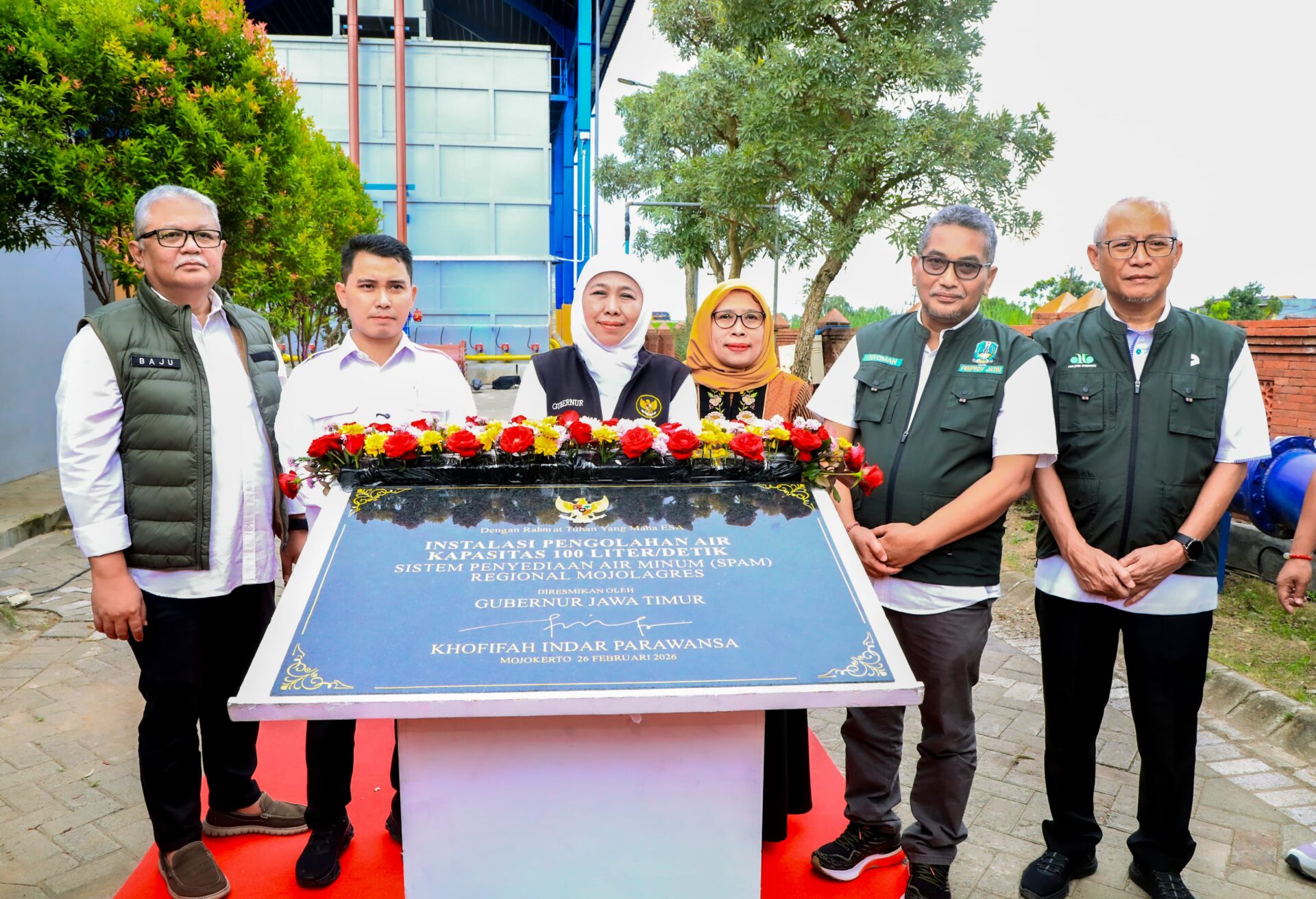 MOJOKERTO.KLIK7TV.CO.ID – Pemerintah Provinsi Jawa Timur melalui Dinas Perumahan Rakyat, Kawasan Permukiman dan Cipta Karya (DPRKP CK) Provinsi Jawa Timur meresmikan Instalasi Pengolahan Air (IPA) berkapasitas 100 liter per detik pada Sistem Penyediaan Air Minum (SPAM) Regional Mojolagres. Peresmian dilaksanakan di Losari Barat, Desa Sidoharjo, Kecamatan Gedeg, Kabupaten Mojokerto pada 26 Februari 2026..