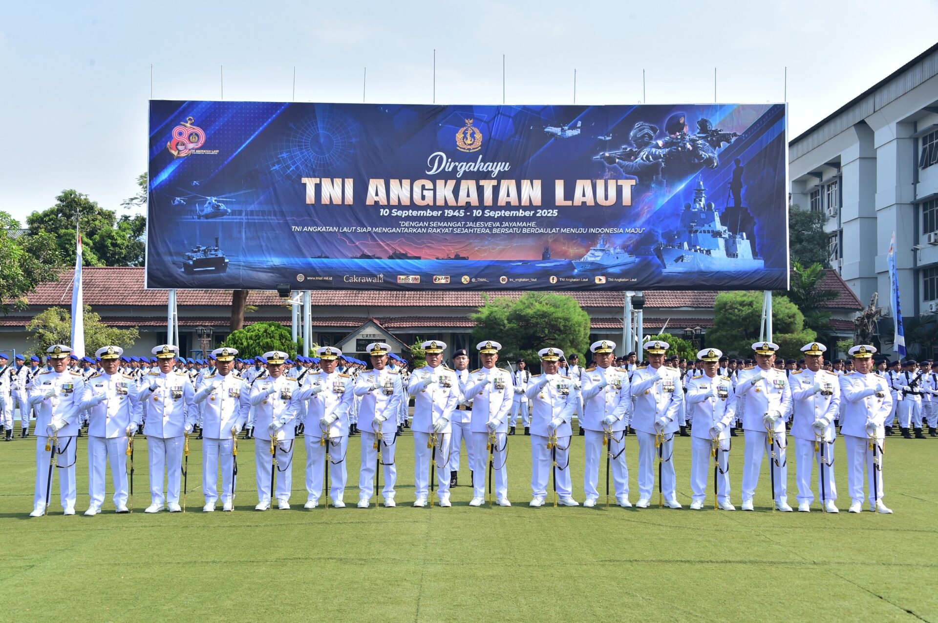 Hari jadi TNI Angkatan Laut yang diperingati setiap tanggal 10 September tersebut mengusung tema “Dengan Semangat Jalesveva Jayamahe, TNI Angkatan Laut Siap Mengantarkan Rakyat Sejahtera, Bersatu Berdaulat Menuju Indonesia maju.”