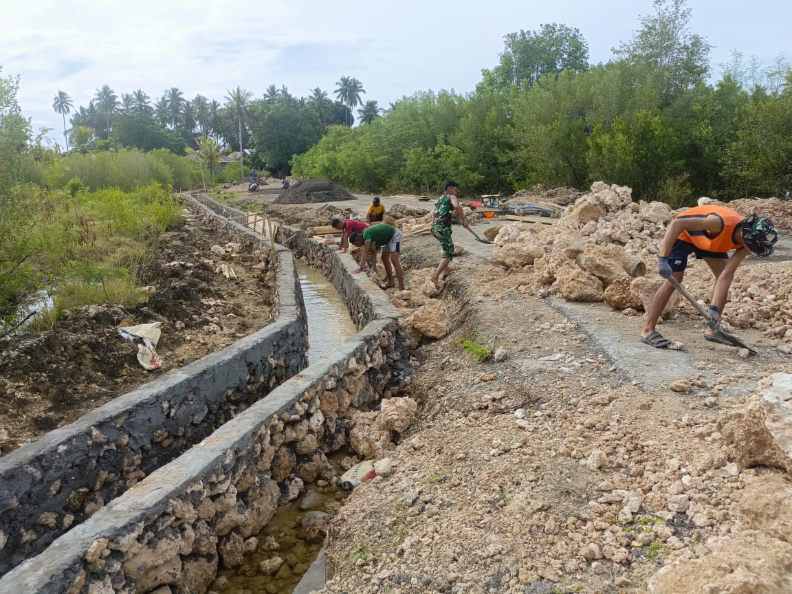 MALUKU UTARA, KLIK7TV.CO.ID – Personel Satgas TMMD Ke-127 Kodim 1514/Morotai terus melanjutkan pengerjaan pembangunan got drainase di Desa Gotalamo, Kecamatan Morotai Selatan, Sabtu (7/3/2026). Pembangunan drainase tersebut merupakan salah satu sasaran fisik dalam program TMMD Ke-127 yang bertujuan memperbaiki sistem saluran air di lingkungan desa sehingga dapat mengurangi genangan air, sekaligus menjaga kebersihan dan kesehatan lingkungan masyarakat.