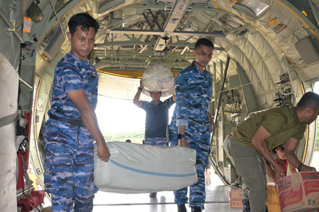 ACEH BESAR, KLIK7TV.CO.ID – Pesawat Hercules C-130 A-1340 dari Skadron Udara 31 Lanud Halim Perdana Kusuma Jakarta kembali menjalankan misi kemanusiaan dalam rangka percepatan penyaluran bantuan sosial (bansos) untuk wilayah terdampak bencana di Aceh.