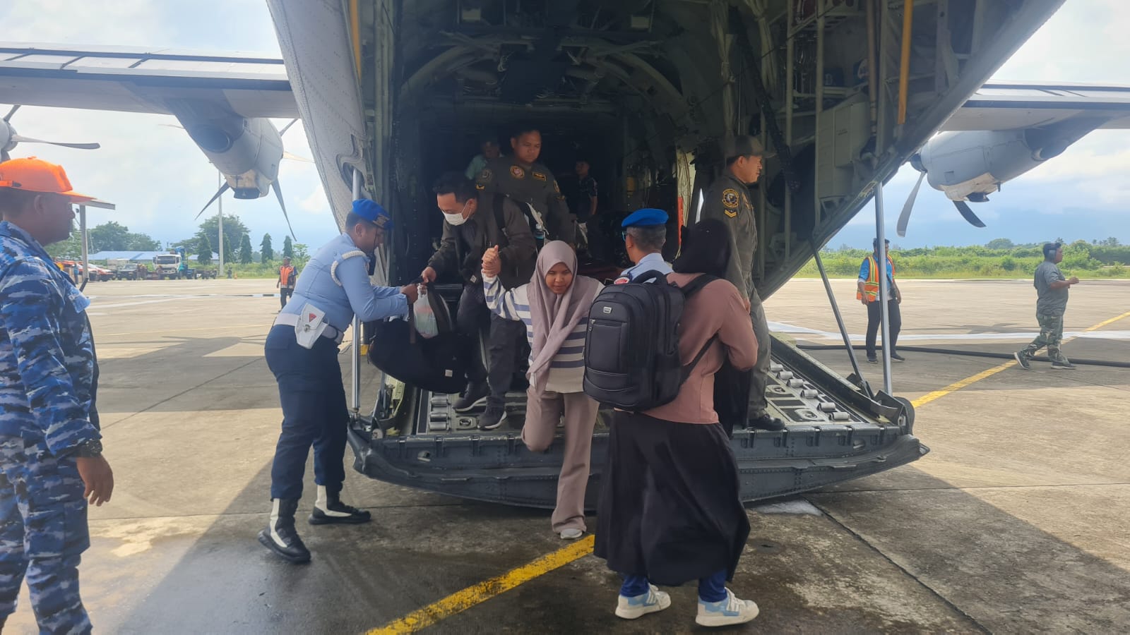 ACEH BESAR, KLIK7TV.CO.ID – Pesawat Hercules C-130 A-1340 dari Skadron Udara 31 Lanud Halim Perdana Kusuma Jakarta kembali menjalankan misi kemanusiaan dalam rangka percepatan penyaluran bantuan sosial (bansos) untuk wilayah terdampak bencana di Aceh.