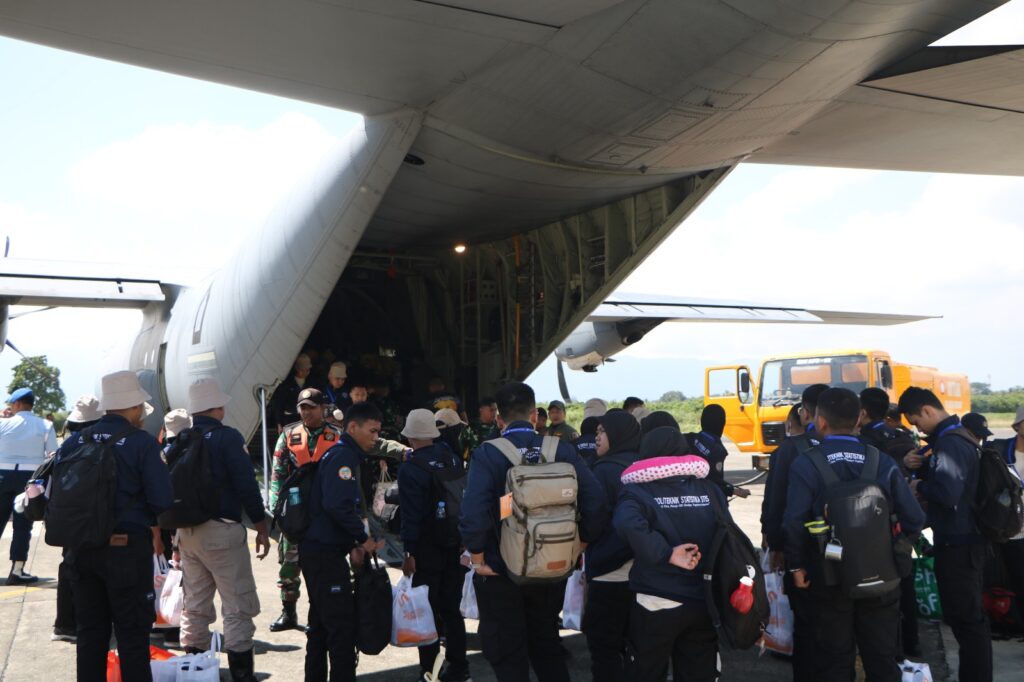 ACEH BESAR, KLIK7TV.CO.ID – Pesawat Hercules C-130 dengan nomor A-1343 mendarat di Lanud Sultan Iskandar Muda (SIM), Aceh Besar, Rabu (14/1/2026). Pesawat tersebut menurunkan sebanyak 60 mahasiswa Politeknik Statistika STIS yang diberangkatkan dari Jakarta.