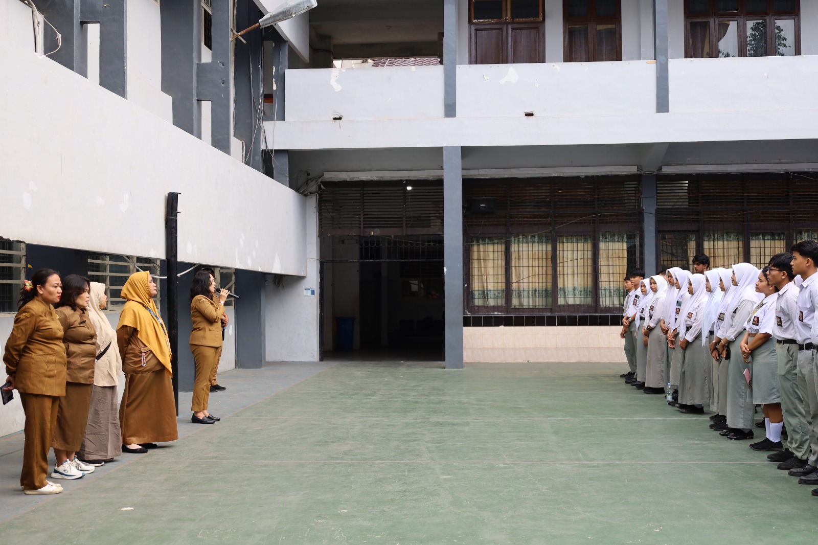 Kepala SMKN 1 Medan May Gloria S Meliala saat memberikan pengarahan di hari terakhir mengapresiasi semua peserta ujian yang telah sudi memberikan baju bekas guna disumbangkan kepada siswa-siswi yang membutuhkannya.