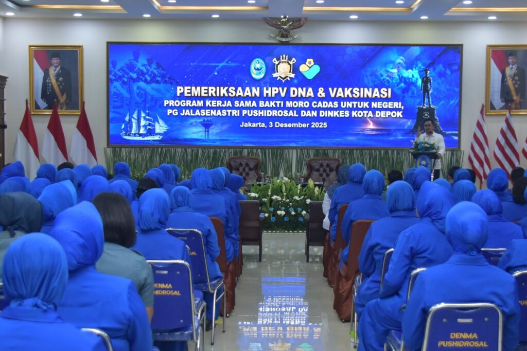 JAKARTA, KLIK7TV.CO.ID – Pusat Hidro-Oseanografi TNI Angkatan Laut (Pushidrosal) melalui PG Jalasenastri Pushidrosal bekerja sama dengan Dinas Kesehatan (Dinkes) Kota Depok menyelenggarakan kegiatan Pemeriksaan HPV DNA dan Vaksin HPV dalam rangka Program Bakti Moro Cadas untuk Negeri. Kegiatan berlangsung di Gedung Serbaguna Mako Pushidrosal, Ancol Timur, Jakarta Utara, Rabu (3/12/2025).