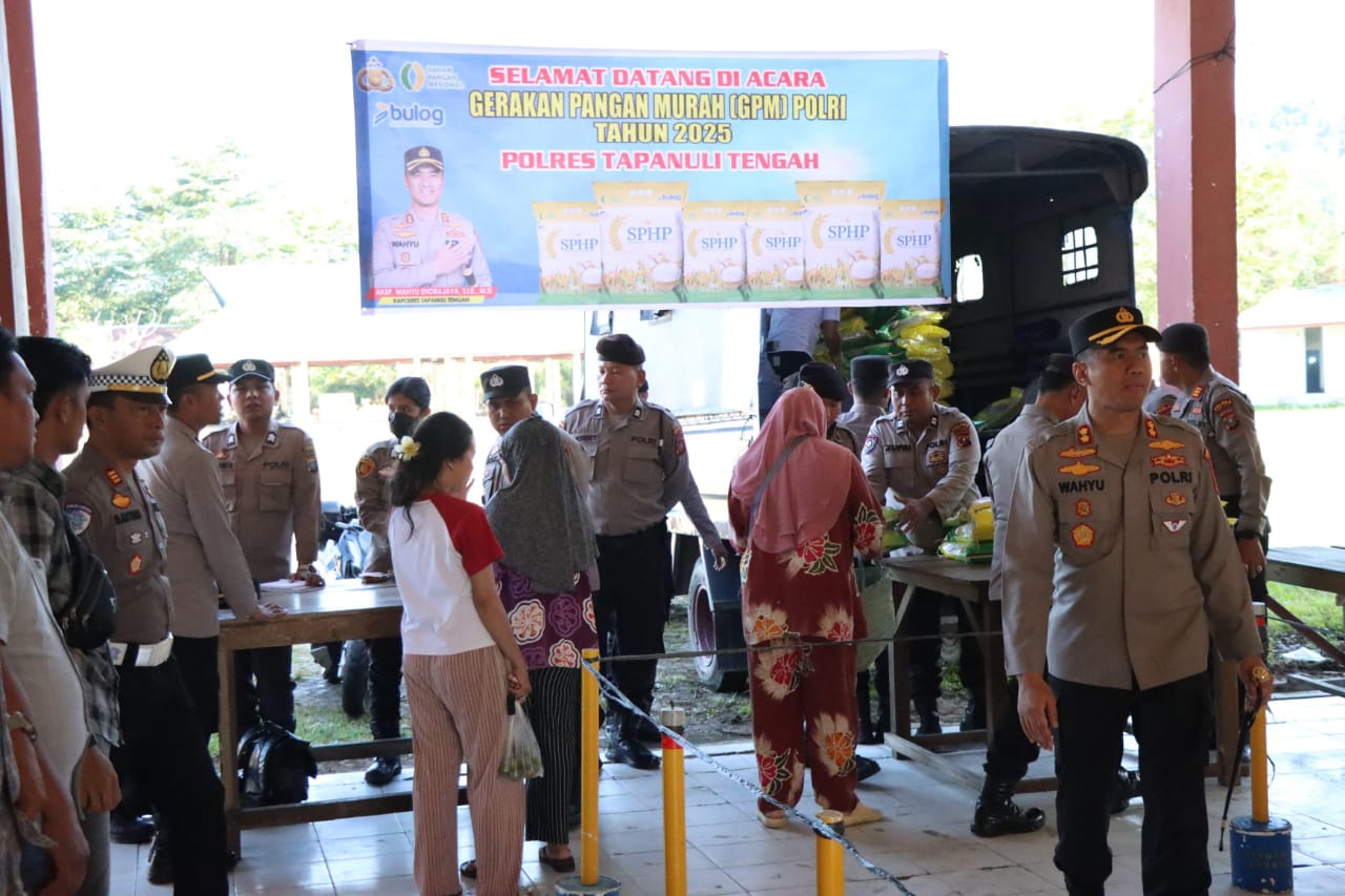 Kapolres Tapanuli Tengah AKBP Wahyu Endrajaya, S.I.K., M.Si, memimpin langsung kegiatan tersebut. Menurut AKBP Wahyu, GPM ini merupakan bentuk peran aktif Polri dalam menjaga ketersediaan bahan pokok dan mengendalikan inflasi pangan, terutama mengingat kelangkaan beras yang terjadi di sejumlah pasar modern dan swalayan.