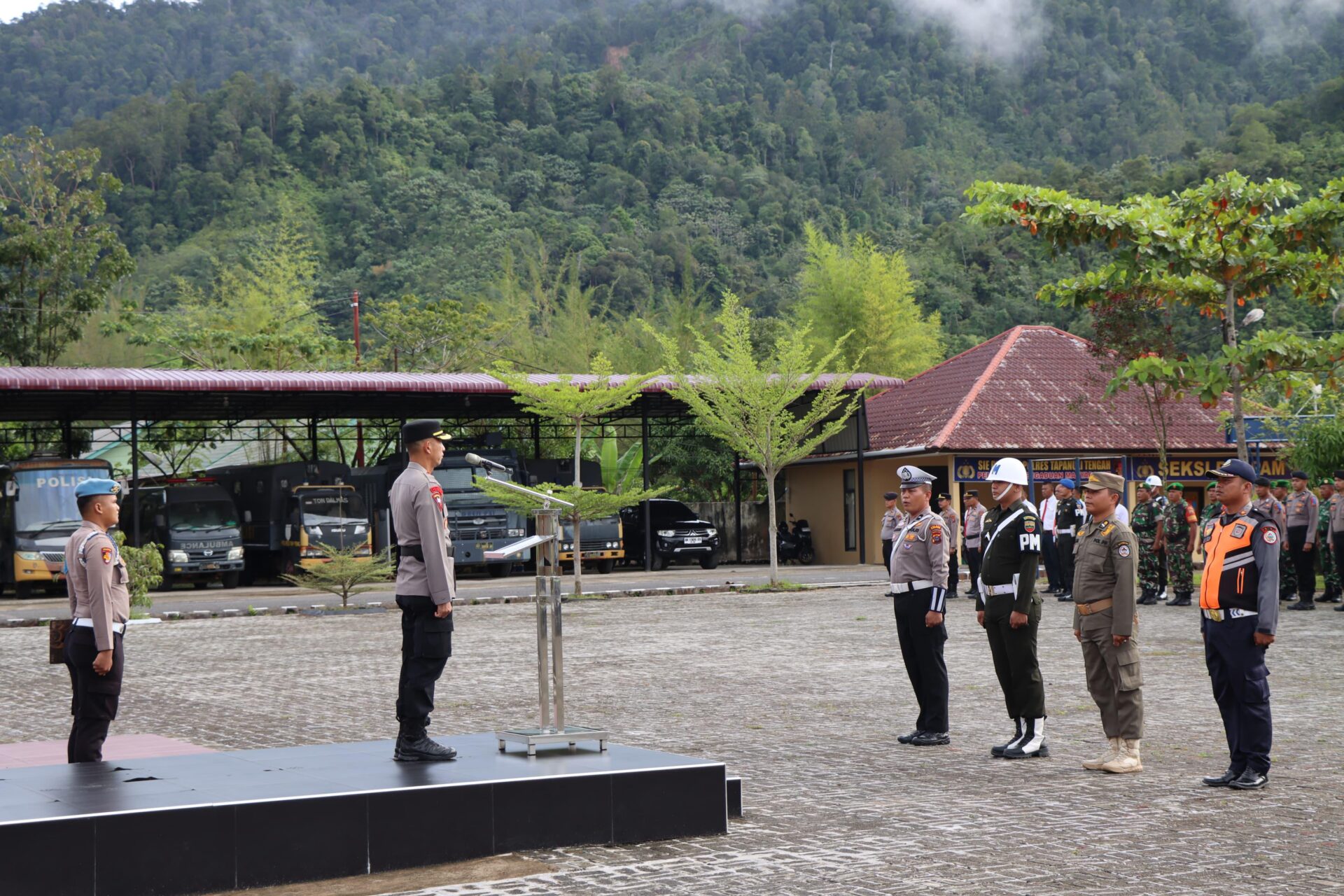 Kompol M. Iskad bertindak sebagai Pemimpin Apel, didampingi Perwira Apel AKP Dela Antomi, S.H. dan Komandan Apel IPDA Zulmansyah Tanjung, S.H., M.H. Pelaksanaan apel ditandai dengan pemeriksaan pasukan dan penyematan pita tanda operasi, menandai dimulainya kesiapan seluruh personel yang terlibat.