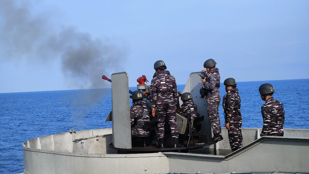 JAKARTA, KLIK7TV.CO.ID – KRI Teluk Amboina-503 dalam rangka Operasi Trisula Jaya-25 melaksanakan latihan penembakan meriam dan senjata ringan, latihan dilaksanakan pada hari Selasa (25/11) dengan sasaran tembak berupa drum di atas air. Kegiatan ini merupakan bagian dari upaya TNI Angkatan Laut untuk meningkatkan kesiapan tempur, ketepatan prosedur, dan profesionalisme para prajurit di medan operasi. Beberapa senjata yang digunakan yaitu meriam 37 mm, mitraliur 12,7 mm, serta Senjata ringan (Senri).