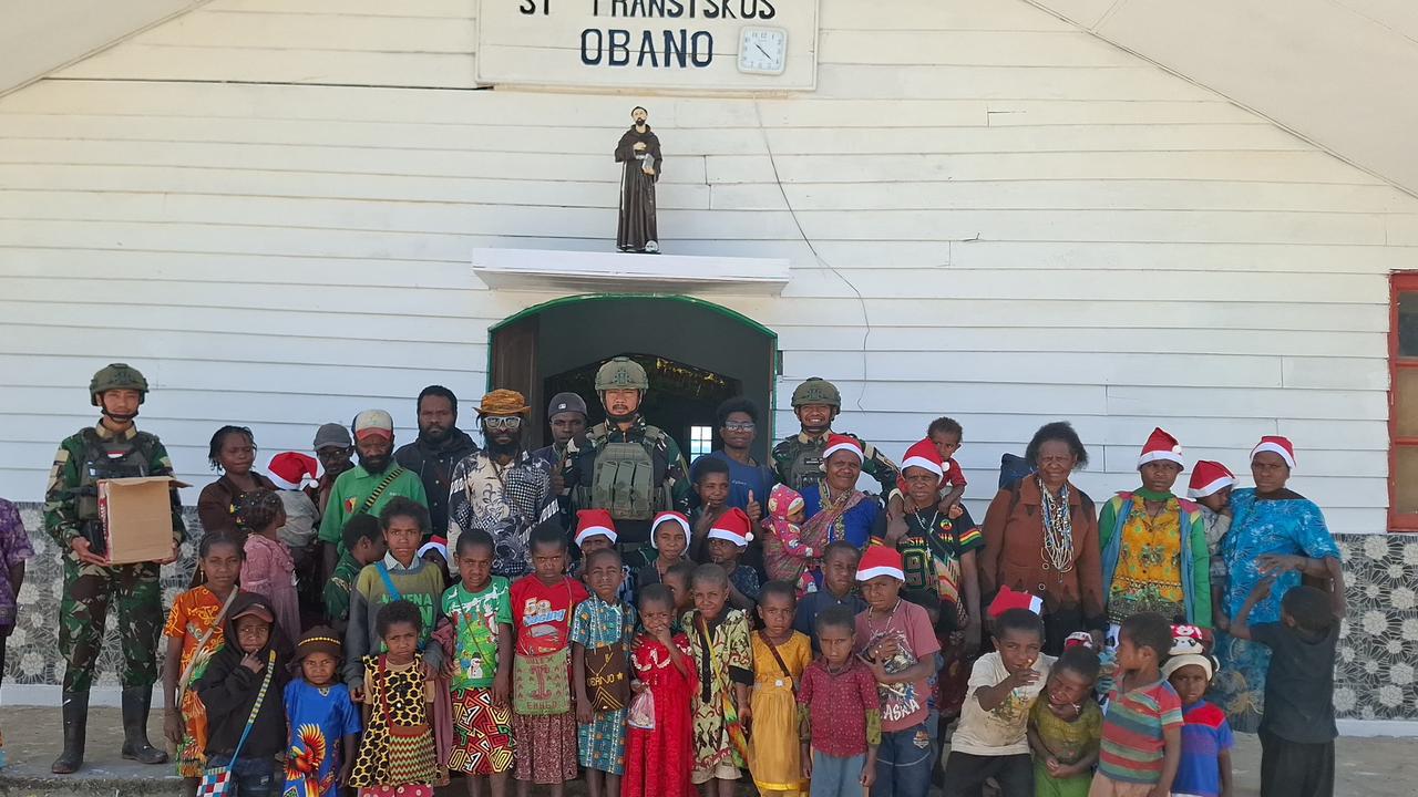 Selain melaksanakan renovasi pembangunan gereja, Prajurit Satgas Yonif 4 Marinir juga turut berbagi kebahagiaan dengan membagikan topi Natal kepada anak-anak dan jemaat Gereja Katolik St. Fransiskus. Suasana penuh kehangatan dan sukacita tampak dari senyum serta tawa para jemaat yang menerima bingkisan sederhana namun sarat makna tersebut.