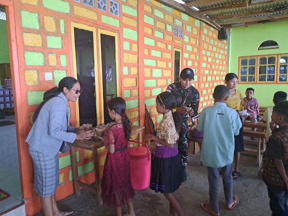 HAUMENIANA, KLIK7TV.CO.ID – Prajurit Satgas Pamtas RI–RDTL Yonarhanud 2 Kostrad melaksanakan kegiatan minggu berbagi bubur kacang ijo di Gereja Kapela Haumeniana, Desa. Haumeniana, Kec. Bikomi Nilulat, Kab. Timor Tengah Utara.