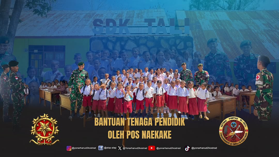 NAEKAKE, KLIK7TV.CO.ID – Dalam upaya menanamkan nilai-nilai kebangsaan sejak dini sekaligus meningkatkan kesadaran hidup bersih dan sehat di lingkungan sekolah, Satgas Pamtas RI-RDTL Sektor Barat Yonarhanud 2 Kostrad Pos Naekake berikan bantuan menjadi tenaga pendidik (Gadik) di SDK Tali, Desa Naekake, Kec. Mutis, Kab. TTU. Senin (13/10)