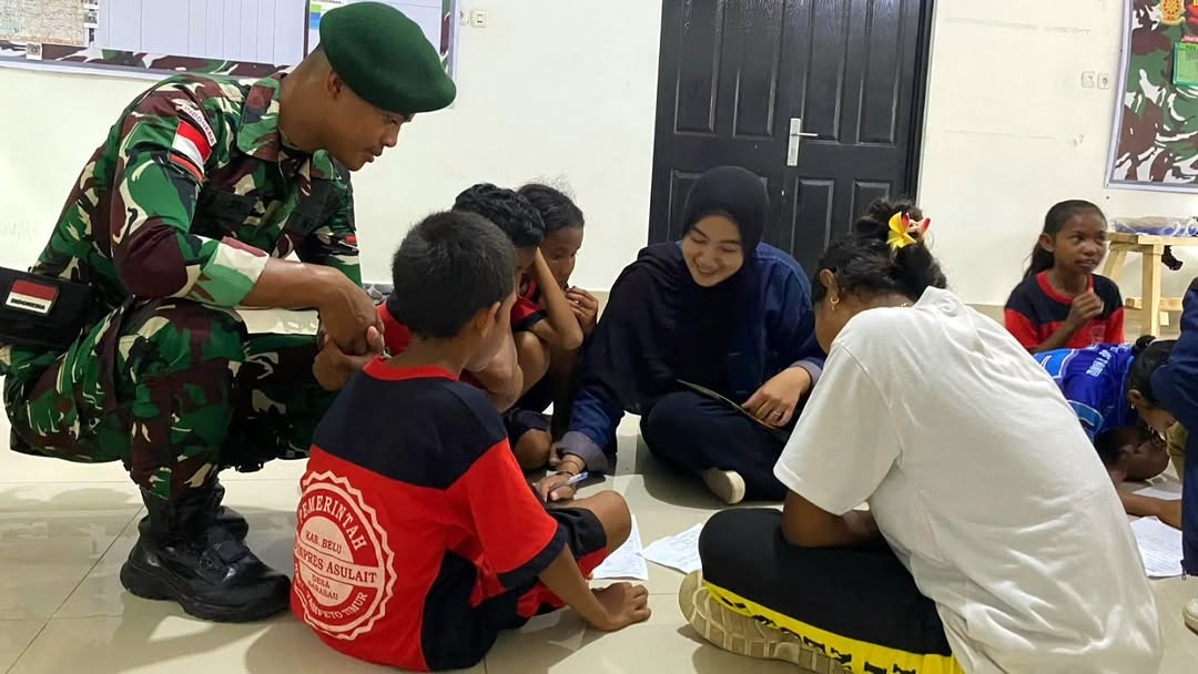 JAKARTA, KLIK7TV.CO.ID — Prajurit Pos Asulait Satgas Pamtas RI-RDTL Yonarmed 12 Kostrad bersama mahasiswa dari Institut Pertanian Bogor (IPB) melaksanakan kegiatan penyuluhan pola hidup sehat dan fun games edukatif bagi anak-anak di wilayah Asulait. Kegiatan ini bertujuan menanamkan kesadaran pentingnya menjaga kebersihan diri dan lingkungan sejak usia dini. Sabtu (08/11/2025).