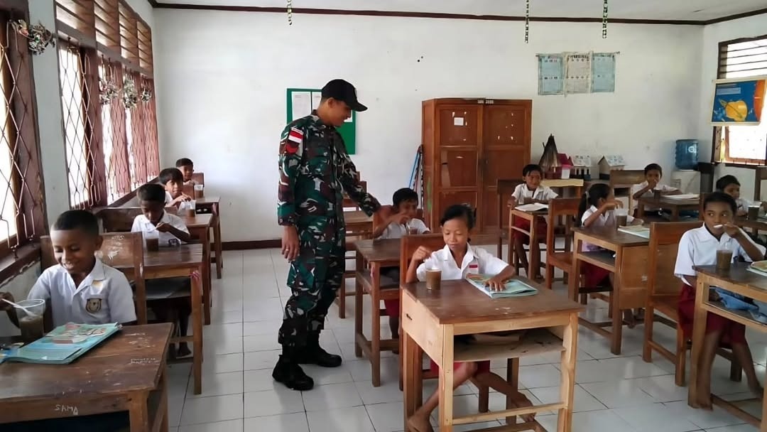 Pembagian makanan bergizi tersebut disambut antusias oleh para siswa dan pihak sekolah. Personel Pos Maubusa membagikan bubur kacang hijau dengan penuh kehangatan, menciptakan suasana ceria dan kebersamaan di lingkungan sekolah, sekaligus mempererat hubungan antara TNI dan dunia pendidikan di wilayah perbatasan.