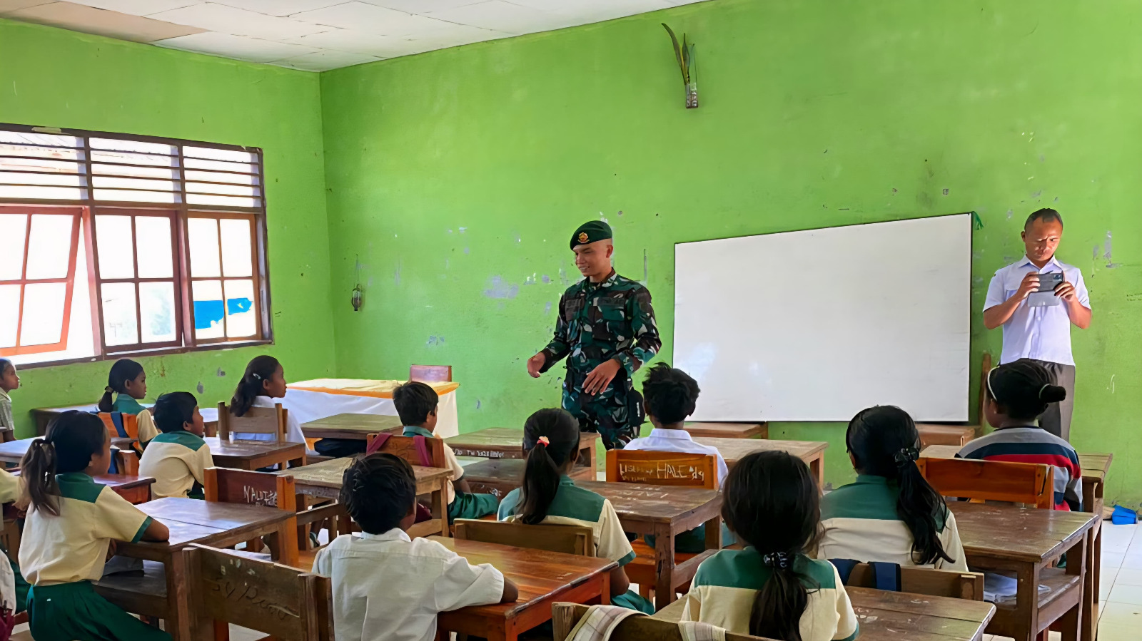 Dansatgas Pamtas RI–RDTL Sektor Timur, Letkol Arm Dr. Erlan Wijatmoko, S.H., M.Han., mengapresiasi kegiatan tersebut dan menegaskan pentingnya peran Satgas dalam mendukung kemajuan pendidikan di wilayah perbatasan.