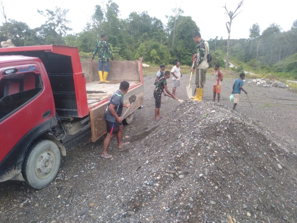 Usai pelaksanaan apel, kegiatan dilanjutkan dengan pengerjaan sasaran fisik, yakni pembukaan akses jalan kampung. Warga Kampung Babak tampak antusias bergabung bersama personel Satgas TMMD, bergotong royong mengangkut bahan bangunan dan menyiapkan lokasi kerja. Suasana kebersamaan yang tercipta menjadi cerminan nyata kemanunggalan TNI dan rakyat di lapangan.
