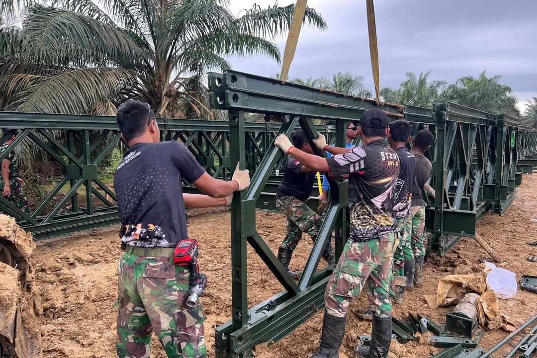 Satgas Yonzipur 10 Kostrad Pasang Jembatan Modular di Aceh Tamiang