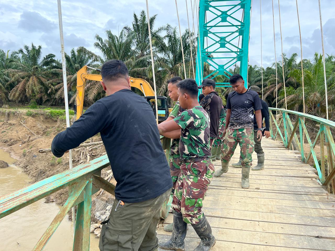 ACEH TAMIANG, KLIK7TV.CO.ID – Satuan Tugas Batalyon Zeni Tempur 10 Kostrad melaksanakan renovasi jembatan gantung di Kampung Tebing Tinggi, Kecamatan Tenggulun, Kabupaten Aceh Tamiang, Rabu (18/02/2026).
