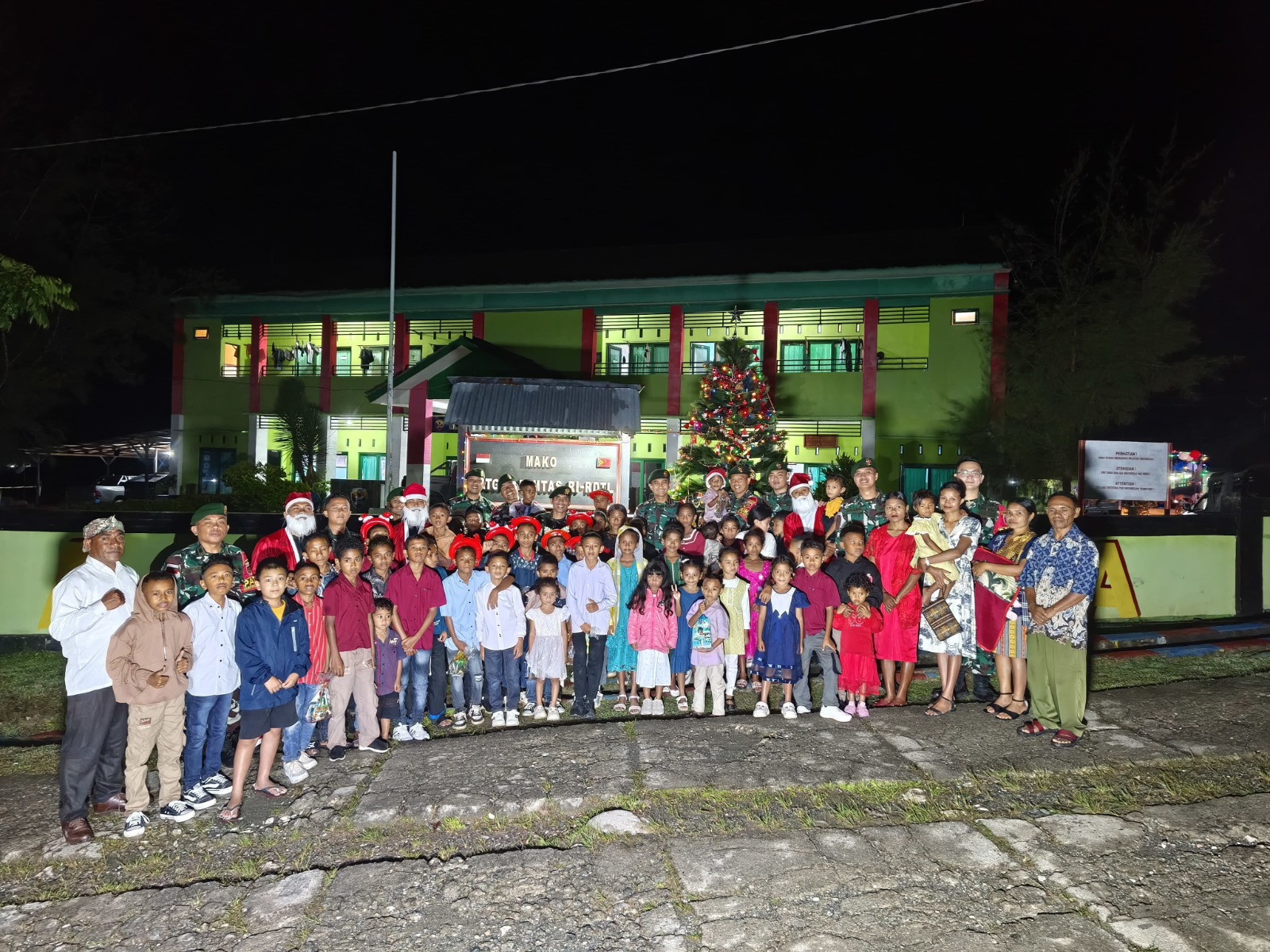 EBAN,KLIK7TV.CO.ID – Suka cita dan kebersamaan pada malam Natal di perbatasan, Satgas Pamtas RI-RDTL Sektor Barat Yonarhanud 2 Kostrad hadirkan Kereta Santa Keliling dan Santa Claus di Makosatgas Pamtas, Desa Eban, Kec. Miomaffo Barat, Kab. TTU. Rabu (24/12)