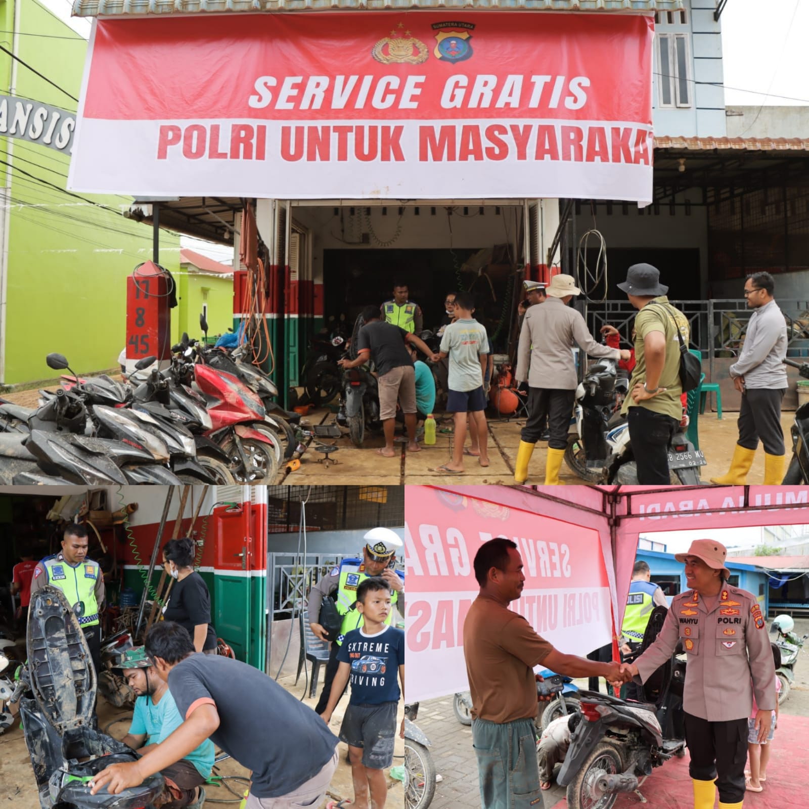 Servis Motor Gratis untuk Korban Banjir ; Polri Untuk Masyarakat Polres Tapteng