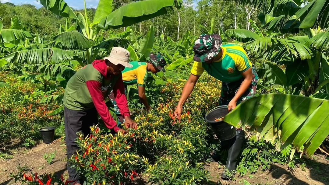 Dalam kegiatan tersebut, prajurit bersama warga bergotong royong memanen cabai yang ditanam secara mandiri oleh kelompok tani setempat. Kehadiran personel Satgas tidak hanya membantu proses panen, tetapi juga memberikan semangat kepada para petani agar terus produktif mengelola lahan pertanian mereka. Selain itu, personel Satgas turut memberikan edukasi ringan tentang pentingnya menjaga kesuburan tanah dan kebersihan lingkungan sekitar area pertanian.