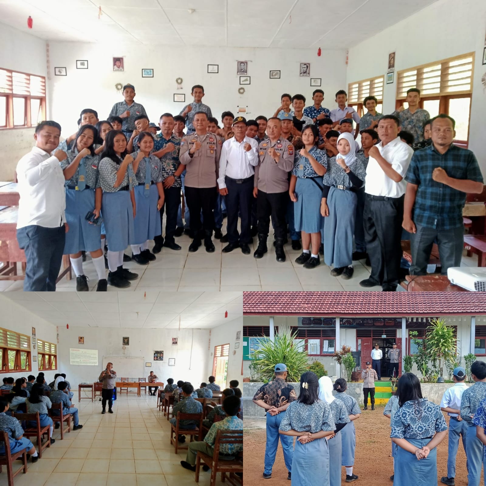 Dalam kesempatan tersebut, personel kepolisian menekankan pentingnya disiplin dan fokus pada pencapaian cita-cita. “Gapailah cita-citamu setinggi mungkin mulai dari sekarang. Jauhi segala pelanggaran baik di sekolah maupun di luar sekolah,” pesan personel Binmas kepada para pelajar.