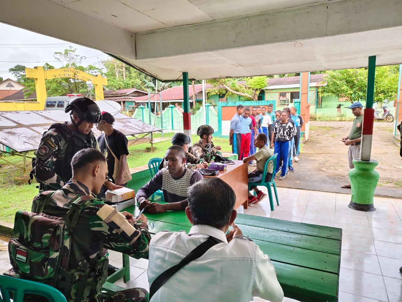 MINDIPTANA, KLIK7TV.CO.ID – Upaya meningkatkan kualitas kesehatan dan kesejahteraan masyarakat di wilayah perbatasan terus dilakukan Satuan Tugas Pengamanan Perbatasan (Satgas Pamtas) RI-PNG Yonif 126/Kala Cakti dengan menggelar kegiatan bakti kesehatan bagi warga Kampung Mindiptana, Distrik Mindiptana, Kabupaten Boven Digoel, Papua Selatan, pada Selasa (25/6/2025).