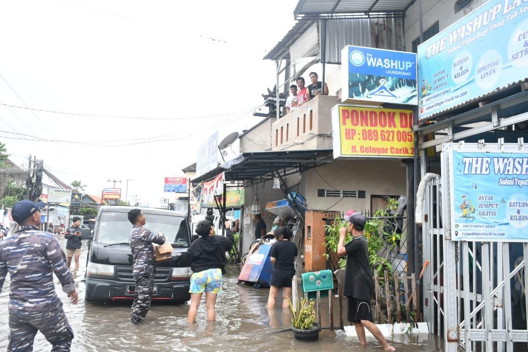 Sejak Subuh, prajurit Lanal Denpasar dibawah pimpinan Komandan Lanal (Danlanal) Denpasar, Kolonel Laut (P) Cokorda G.P. Pemayun, S.H., M.Sc., M.Tr., Hanla., bergerak cepat menuju lokasi-lokasi terdampak banjir, diantaranya kawasan pasar Badung, kawasan pinggir sungai Badung dan jalan utama yang tergenang air.