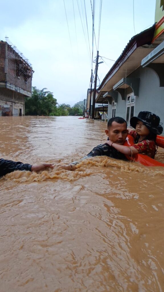 JAKARTA, KLIK7TV.CO.ID – Prajurit Pangkalan TNI AL (Lanal) Sibolga terjun langsung membantu korban banjir yang melanda Kabupaten Tapanuli Tengah (Tapteng). Curah hujan tinggi yang mengguyur sejak Selasa (25/11) menyebabkan sejumlah wilayah terendam, terutama di Kelurahan Sibuluan Nalambok, Kecamatan Sarudik.
