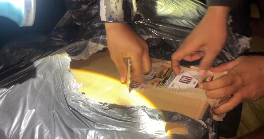 Dalam operasi tersebut, petugas mengamankan satu unit kapal jenis pompong tanpa nama yang kedapatan membawa muatan 75 koli sepatu bekas (4.566 pasang), 211.460 batang rokok non cukai, 9 pcs karpet, serta barang pribadi 3 tas ransel dan 3 unit handphone. Tiga orang tersangka berinisial I, A, dan C turut diamankan dan saat ini ditahan di Mako Lanal Tanjung Balai Karimun beserta barang bukti untuk proses hukum lebih lanjut.