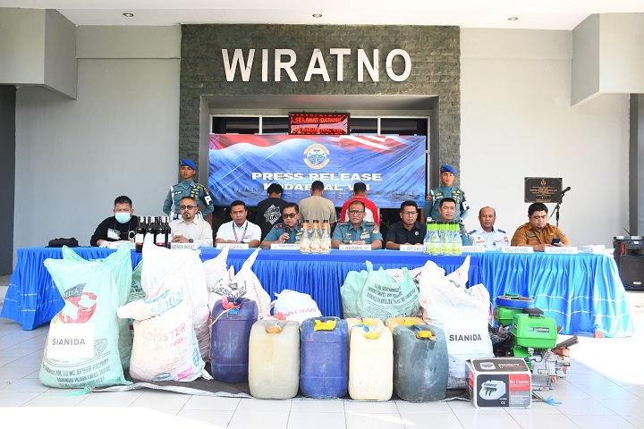 Barang bukti yang berhasil diamankan berupa Sianida (CN) sebanyak 13 karung (@50 kg) dengan total kurang lebih 650 kg, serta 3 dus minuman keras. Diperkirakan nilai total barang temuan mencapai kurang lebih Rp 654.591.040.
