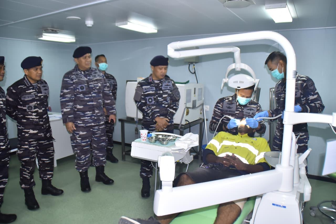 PORT MORESBY, KLIK7TV. CO.ID – 15 September 2025, Memasuki hari kedua kunjungan di Papua Nugini (PNG), Satuan Tugas (Satgas) Port Visit TNI AL 2025 melaksanakan Bakti Sosial dan Kesehatan bagi masyarakat setempat di KRI dr. Wahidin Sudirohusodo-991 (WSH-991) yang bersandar di dermaga T-Wharf, Port Moresby.