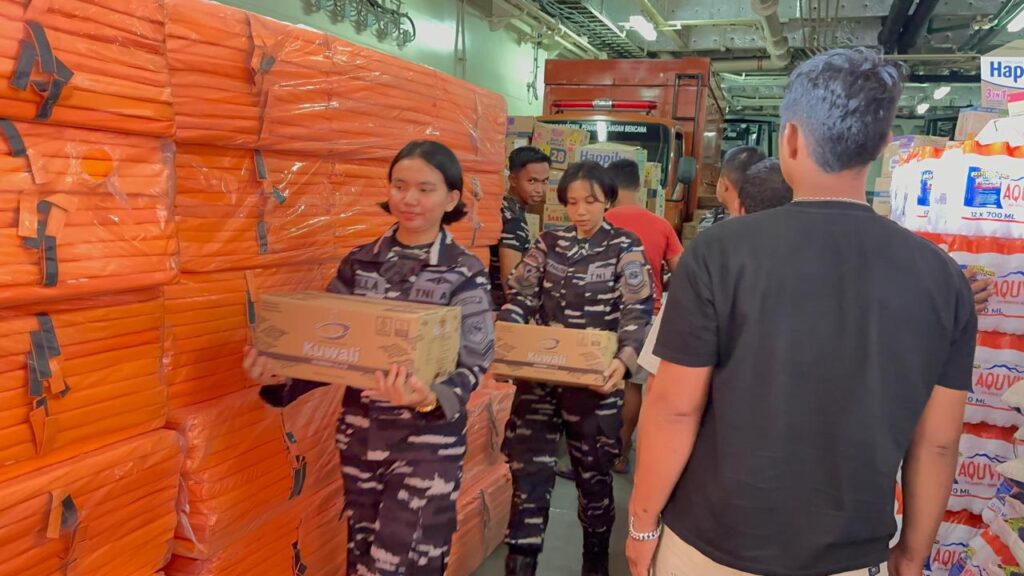 JAKARTA, KLIK7TV.CO.ID – TNI Angkatan Laut melalui unsur KRI Semarang-594 yang beroperasi di wilayah perairan Sumatera Utara, berhasil melaksanakan debarkasi atau penurunan ratusan ton bantuan logistik kemanusiaan untuk disalurkan kepada masyarakat di Sibolga. Senin (08/12). Dalam kesempatan ini pelaksanaannya ditinjau oleh Komandan Kodaeral II Laksamana Muda TNI Sarimpunan Tanjung.