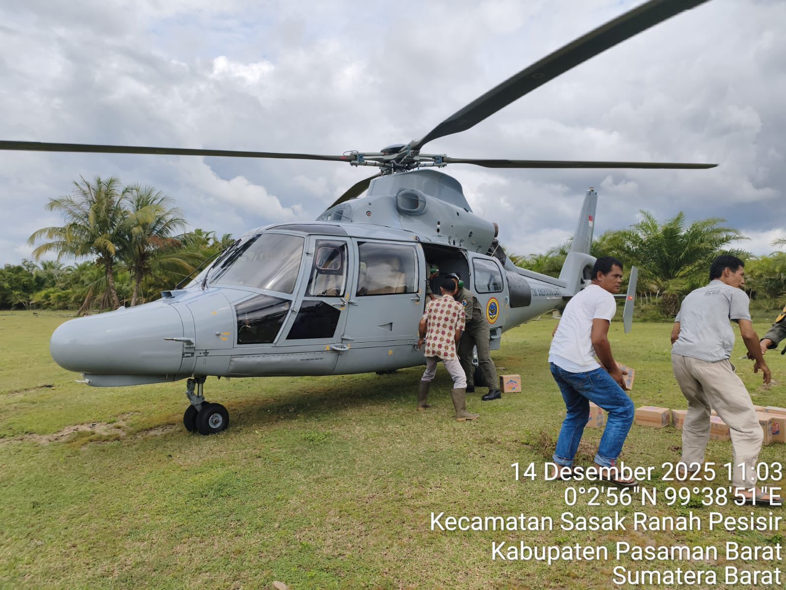 Secara simultan, sebuah Helikopter AS 565 MBe Panther (HS-1310) dikerahkan untuk mendistribusikan bantuan logistik di daerah terpencil di Kabupaten Pasaman Barat, Sumatera Barat. Helikopter Panther ini menyasar dua lokasi berbeda yang membutuhkan akses cepat dan efisien yaitu, Desa Bateh Somuik dan Desa Maligi, Kecamatan Sasak, di kedua Lokasi tersebut TNI AL menurunkan 400 kg logistic bantuan untuk masyarakat.
