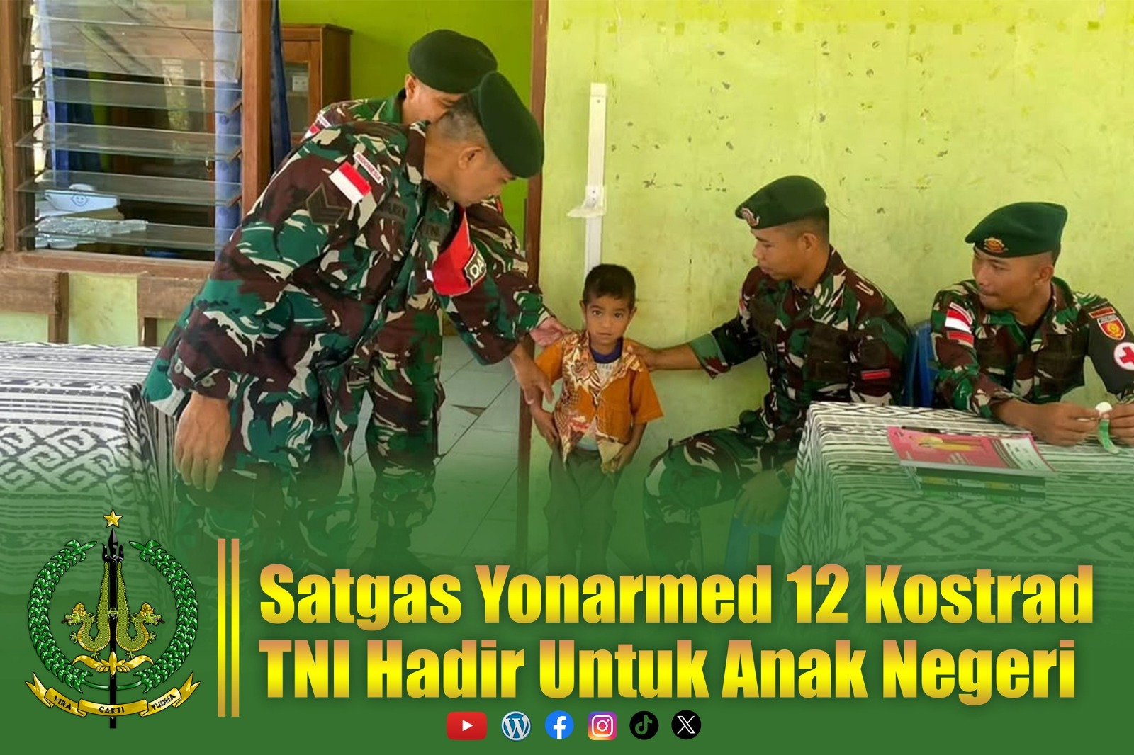 BELU, KLIK7TV.CO.ID – Pos Maubusa Satgas Pamtas RI-RDTL Sektor Timur Yonarmed 12 Kostrad melaksanakan kegiatan pelayanan kesehatan bagi anak balita di Posyandu Dusun Nuaderok, Desa Asumanu, Kecamatan Raihat, Kabupaten Belu, Nusa Tenggara Timur. Selain pemeriksaan kesehatan, kegiatan juga dirangkaikan dengan pembagian bubur kacang ijo sebagai upaya meningkatkan asupan gizi bagi anak-anak di wilayah perbatasan. Selasa (14/10/2025).