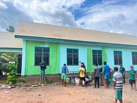 OEPOLINATEMNANU, KLIK7TV.CO.ID – Satgas Pamtas RI–RDTL Sektor Barat Pos Oepoli Tengah melaksanakan kegiatan karya bakti berupa pengecatan Gereja Jemaat GKTT Imanuel Oepoli Desa Netemnanu Utara, Kec. Amfoang Timur, Kab. Kupang. Senin (23/02/2026).