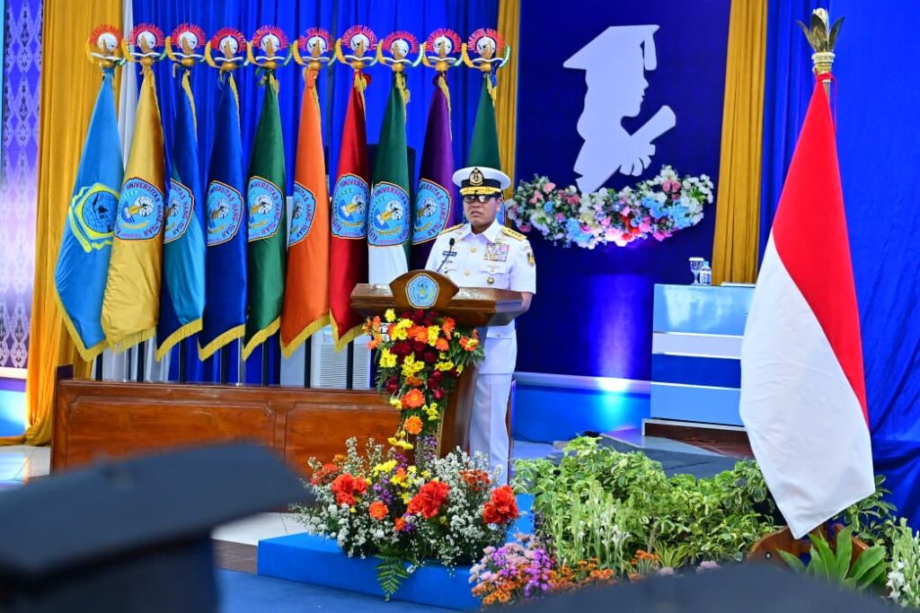 Lebih lanjut, Kasal juga menyampaikan apresiasi kepada seluruh orang tua, wali wisudawan dan keluarga, serta ketua dan pengurus Yayasan Nala, rektor, para dosen serta seluruh staf Universitas Hang Tuah atas dukungan, bimbingan, dan dedikasi dalam penyelenggaraan pendidikan yang berkualitas dan berkarakter bagi para wisudawan Kampus Laut Biru. “Teruslah brrkembang dan berkarya demi meningkatkan kualitas kehidupan pribadi, bernegara dan berbangsa yang lebih baik,” tegas Kasal.