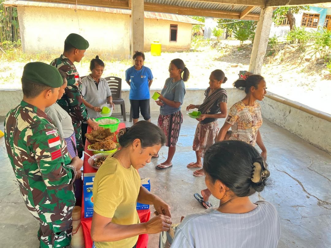 “Kegiatan ini diadakan di Desa Nainaban, kami turut membantu dan mendukung program yang sudah ada agar dapat berjalan lancar dan terdistribusi tepat sasaran kepada anak-anak dan Balita.” ujar Danpos Baen, Letda Arh Sulthan.