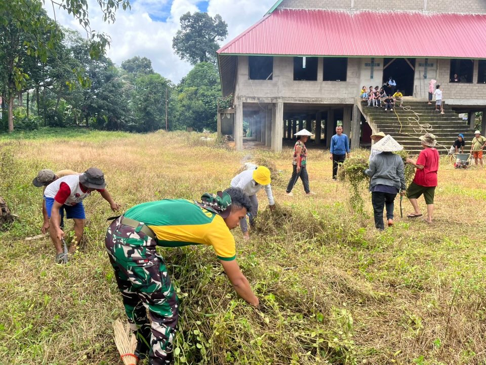 Gotong royong difokuskan pada kegiatan pembersihan halaman gereja dan pemotongan rumput area sekitar tempat ibadah. Prajurit dan masyarakat bekerja bersama dengan penuh semangat untuk menciptakan lingkungan gereja yang bersih sehingga umat dapat menjalankan ibadah Natal dengan lebih khidmat dan tenang.
