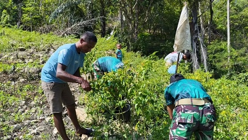 Malaka, NTT – Personel Pos Auren Satgas Pamtas RI–RDTL Sektor Timur dari Batalyon Armed 12 Kostrad melaksanakan kegiatan panen cabai bersama masyarakat di Desa Resikun, Kecamatan Kobalima Timur, Kabupaten Malaka, Nusa Tenggara Timur, Senin (23/02/2026).