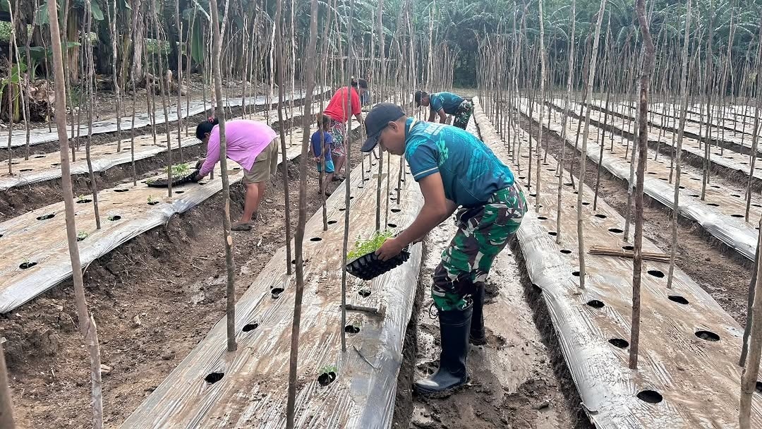 Kegiatan berlangsung penuh semangat dan kebersamaan. Prajurit Pos Haslot bersama warga bahu-membahu mengolah lahan, menanam bibit tomat, hingga memberikan edukasi sederhana terkait perawatan tanaman agar hasil panen dapat lebih optimal. Suasana kekeluargaan yang terjalin mencerminkan sinergi positif antara TNI dan masyarakat di wilayah perbatasan.